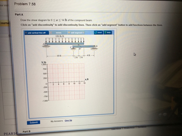 Question: Draw the shear diagram for 0 ? x ? 14 ft of the compound beam. This problem has been solved! See the answer ...