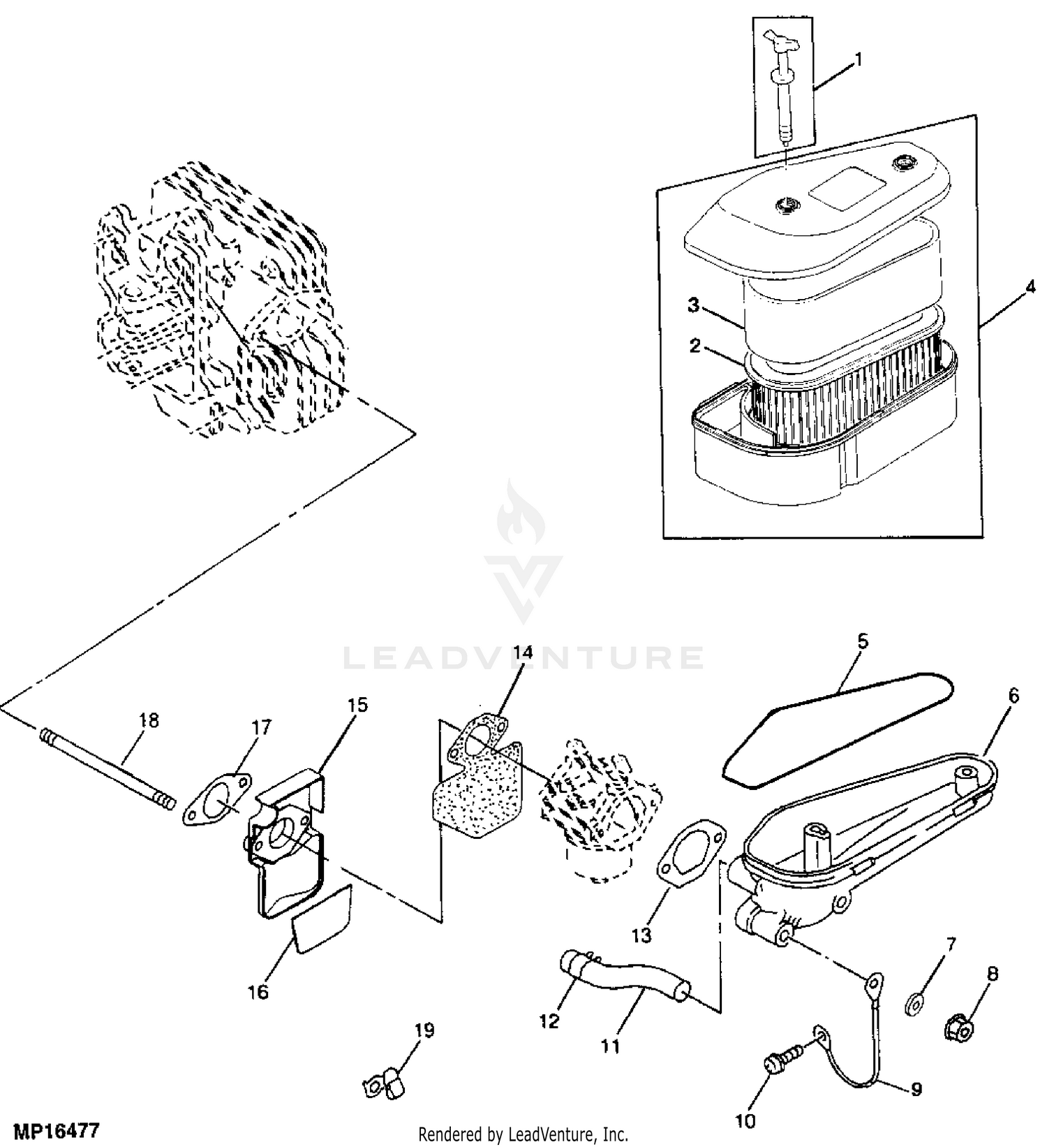 John Deere Lx176 Lawn Tractor With 44 In Mower Deck Pc2317 1998 Model M0l176c180001 999999 Lx176 Lawn Tractor With 44 In Mower Deck Pc2317 Air Cleaner Intake Manifold Lx178 Lx188 Fuel And Air