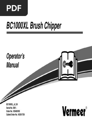 BC1000XL Brush Chipper. Operators Manual. BC1000XL_o3_06 Serial No. 5001 - Order No. 105400V85 Cabled Order No. 163551738 INTRODUCTION This manual explains the proper operation of your machine. Study and understand these instructions thoroughly before operating or maintaining the machine. Failure to do so could result in personal injury or equipment damage.