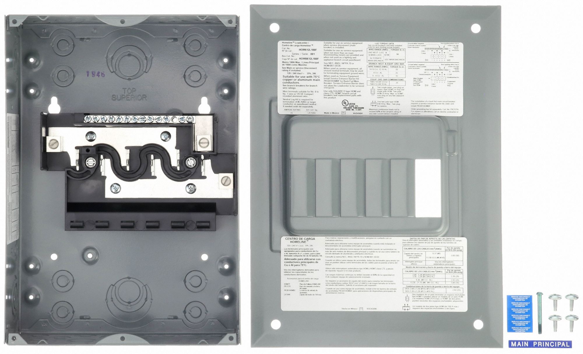 Hom612l100scp Load Center Homeline 1 Phase 6 Spaces 12 Circuits 100a Fixed Main Lugs Nema1 Surface Cover Consumer Pack Schneider Electric Usa