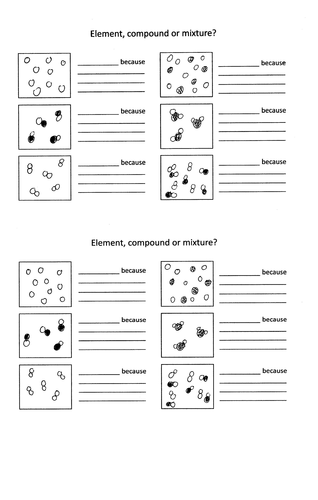 23 Sep 2020 — To differentiate the states of matter at least at a particle level, ... A homogeneous mixture in which on substance, the solute, ... HETEROGENEOUS MIXTURES Composition is variable. Composition is in fixed proportions. Substances Elements : made of ONE TYPE of atom with their own unique properties. ... Particle Diagrams Aim: To represent the different forms of matter using particle diagrams. SUBSTANCES MIXTURES One type of element One type of compound 16.04.2018 · iron filings with sulfur powder is a commonly used heterogeneous mixture; ... draw a particle diagram of a substance, clearly distinguishing the different components; complete a short quiz on keyword definitions. Then provide them with feedback and have them recomplete the task. Progression to 14–16 . The nature of chemical substances is a fundamental concept in chemistry, … However, a heterogeneous mixture has non-uniform composition and its constituent substances are easily distinguishable from one another (often, but not always, in different phases). Several solid substances, such as salt and sugar, dissolve in water to form a special type of homogeneous mixture called a solution, in which there is both a solute (dissolved substance) and solvent (dissolving ...
