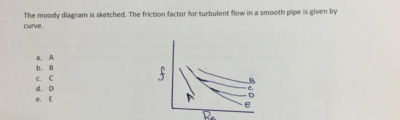 The Moody diagram. The friction factor is used to calculate the pressure drop due to the flow of a fluid in a pipe. It represents the interaction in between the fluid and the pipe. There are different ways to calculate it, one can be graphical, using a Moody graph. Note that the friction factor used here is Darcy (also called Darcy-Wesibach or ... The friction factor or Moody chart is the plot of the relative roughness (e/D) of a pipe against the Reynold's number. The blue lines plot the friction factor for flow in the wholly turbulent region of the chart, while the straight black line plots the friction factor for flow in the wholly laminar region of the chart. In 1944, LF Moody plotted ... Weisbach equation, it is more convenient to use equations for the Moody friction factor, f, rather than a graph like the Moody diagram. There are indeed equations available that give the relationships between Moody friction factor and Re & /D for four different portions of the Moody diagram. The four portions of the Moody diagram are: The most common method to determine a friction factor for turbulent flow is to use the Moody chart. The Moody chart (also known as the Moody diagram) is a log-log plot of the Colebrook correlation that relates the Darcy friction factor, Reynolds number, and the relative roughness for fully developed flow in a circular pipe.