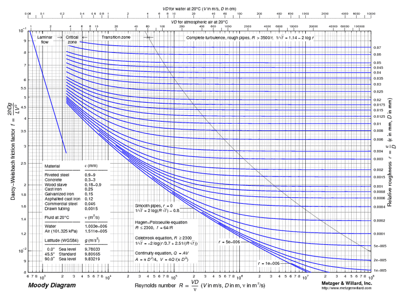 The work of Moody, and the Moody Diagram on page 6 72 of the published transactions, has become the basis for many of the calculations on friction loss in pipes, ductwork and flues. While there are modified versions of the original Moody Diagram, I will strive to use the original diagram as the basis for terminology used here.