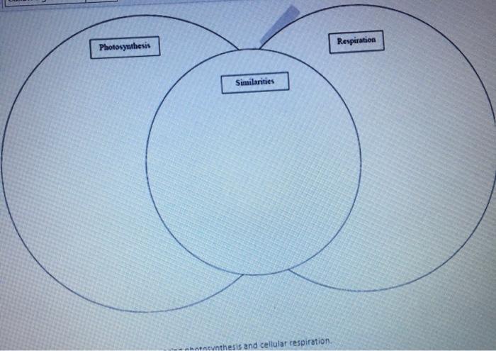 1 answerThe Venn diagram below compares and contrasts photosynthesis and cellular respiration. Venn Diagram Comparing Photosynthesis and Cellular...