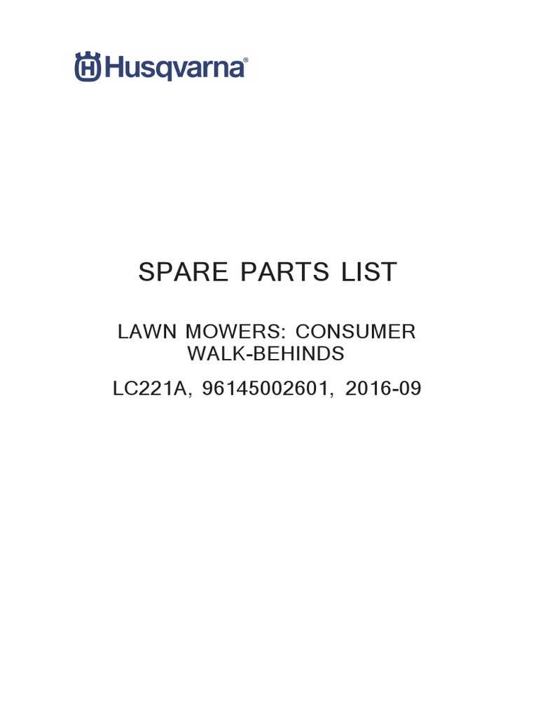 LC221A, 96145002601, 2016-09 Choose; LC221A, 96145003500, 2016-11 Choose You're at the Husqvarna Spare Parts Shop. ... You're at Husqvarna Spare Parts Shop. Nulla vitae elit libero, a pharetra aug ue. Maec enas sed diam eget risus va rius blandit sit amet non magna, null am id dolor id nibh.