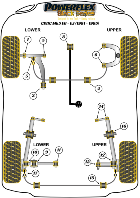 1998 Honda Civic HX All Engines Product Details Location : Rear Warranty : 2-year Energy Suspension Limited Warranty Material : Polyurethane Product Fit : Direct Fit Quantity Sold : Set of 2 Prop 65 Warning :