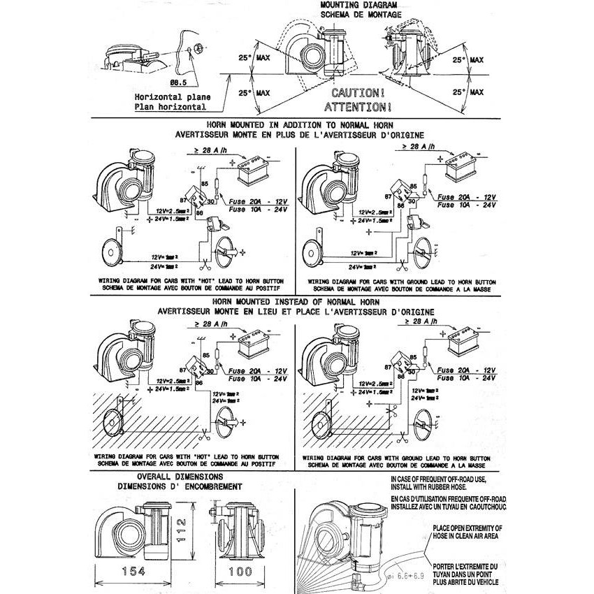 Stebel nautilus air horn wiring diagram. Installation manual for the Stebel Nautilus series, Wolo Bad boy, Wolo Truck horn, VM2, NM2, GP series, Power House chrome dual trumpet, Bandido dual tone air horn, MC Airsplitter Dual Tone Air Horn www.valkmotive.com. Modern Vespa : Tutorial: Installing a Stebel Airhorn on a GTV. modernvespa.com. Electrical Switch And Outlet Wiring. A relay solves this problem. The horn switch activates the relay, and the relay circuit closes to power the horn. When I ordered my Stebel Nautilus Air Horn, the relay was included, as well as a basic wiring diagram. Also I used black shrink wrap on any exposed wires going to the horn, and simply used small black zip ties to attach it. There is a space on the left side of the RT under the fascia trim which turns out to be perfect for mounting a 139dB Stebel Nautilus Dual-tone Air Horn. For reasons not explained, the manufacturer would like the Nautilus to stand vertical side-to-side and fore-and-aft. The space I've chosen for this will acommodate the Nautilus as near perfectly upright as makes no difference! Stebel Nautilus how-to (with pictures) I've been hanging around this site for long enough to start feeling guilty about finally getting something back to the community. Stebel Nautilus is a compact air-horn with a claimed loudness of 139dB. When you read a fine print on the box, you will find out that the 139dB value is measured at 4 inches ...