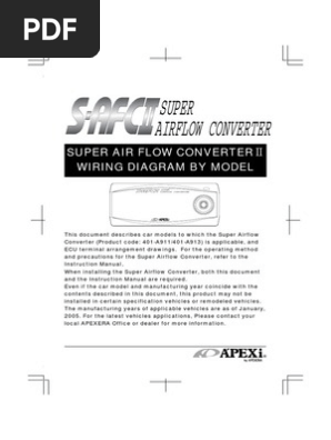 Apexi Installtion Instruction Manual Safc 2 Super Air Flow Converter Wiring Diagram - Free download as PDF File (.pdf), Text File (.txt) or read online for ... Rating: 3 · 2 votes