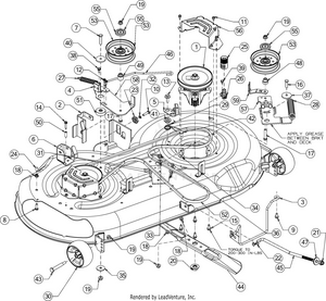 The above belt diagram for an MTD riding mower is only for a 46" deck belt, if you have a different belt, you may want a different frame of reference. The personalized photo can also help you apply these tips to your particular machine. 2. Loosen the idler pulley rods to remove the old belt, and inspect the new belt for installation.