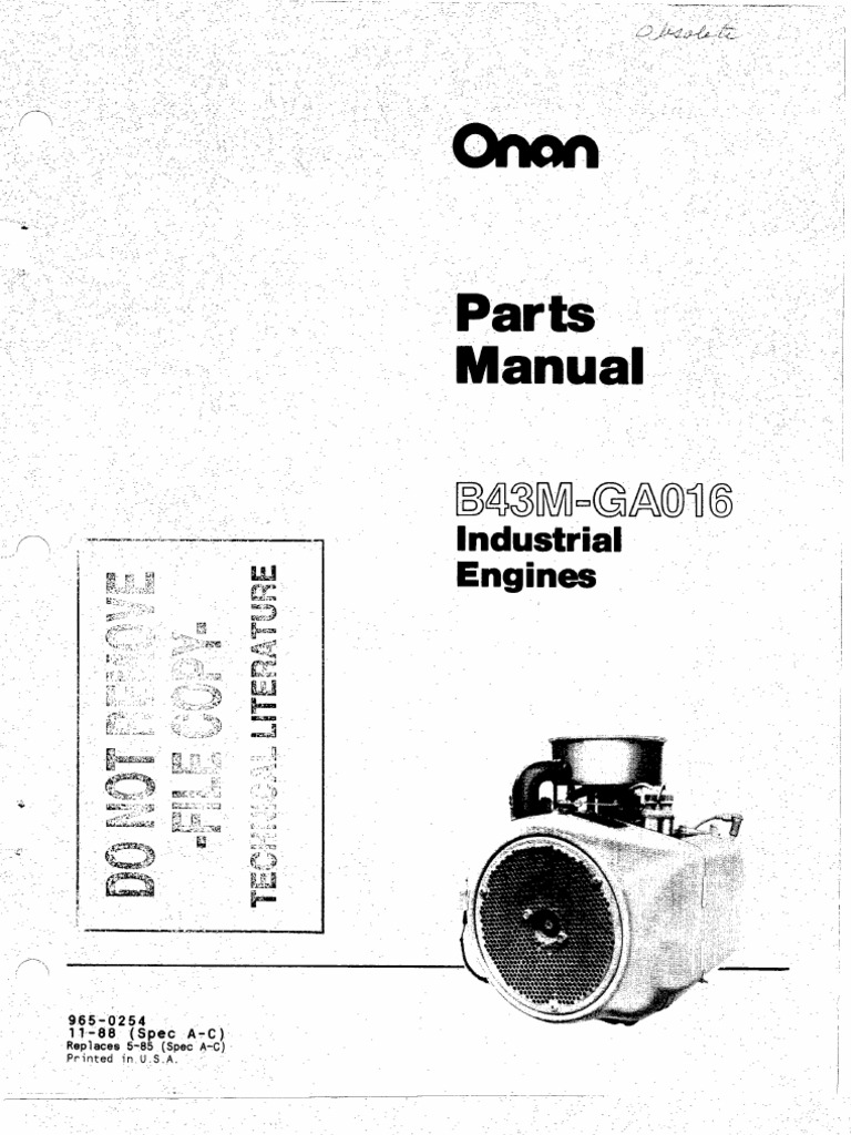 965 0255 Onan B48M GA018 (spec A) Industrial Engines Parts Manual (11 1988)
