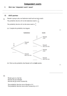 docx, 858.08 KB. pdf, 814.28 KB. 3 double sided worksheets containing exam questions on: - Independent events. - Dependent events. - Mixed questions (incl. two ways table) Answers included.