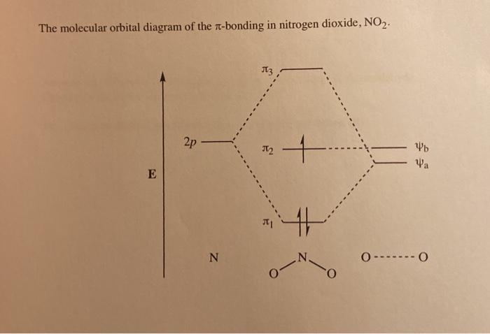 Solved Consider the following molecular orbital diagram ... Solved Consider the following molecular orbital diagram for | Chegg.com. Science. Chemistry. Chemistry questions and answers. Consider the following molecular orbital diagram for NO2 : 2p ппы 41 = 2p Onb Energy 2s 46 # # 2s - 2s 2s 2s + 2s # N NOŻ 02 2 x 0 1. Please answer the following questions to ensure the MO diagram above is understood.