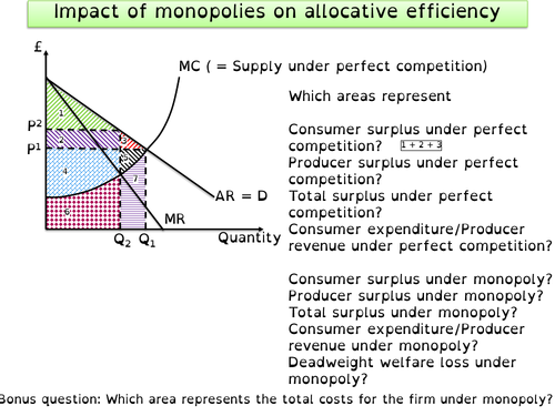 What is deadweight loss? Examples using monopolies, pollution, and... The difference between the marginal benefits and marginal costs between these two points (the area of a triangle), shows us the deadweight loss caused by the monopoly. Whenever a policy results in a deadweight loss, economists try to find a way recapture the losses from the deadweight loss. Microeconomics: Chapter 15 Flashcards | Quizlet Refer to the diagram to the right which shows the demand and cost curves facing a monopolist. Suppose the monopolist represented in the diagram to the right produces positive output. A monopoly is characterized by all of the following except. there are only a few sellers, each selling a... Y2 16) Monopoly Deadweight Welfare Loss - A* Content - YouTube Now I have the opportunity to fill that void by making Economics tutorial videos suitable for students at AS, A Level and IB as a teacher and Head of Economics. I also post videos to best guide exam technique to aid revision for those all important exams, all for the benefit of students; enjoy!