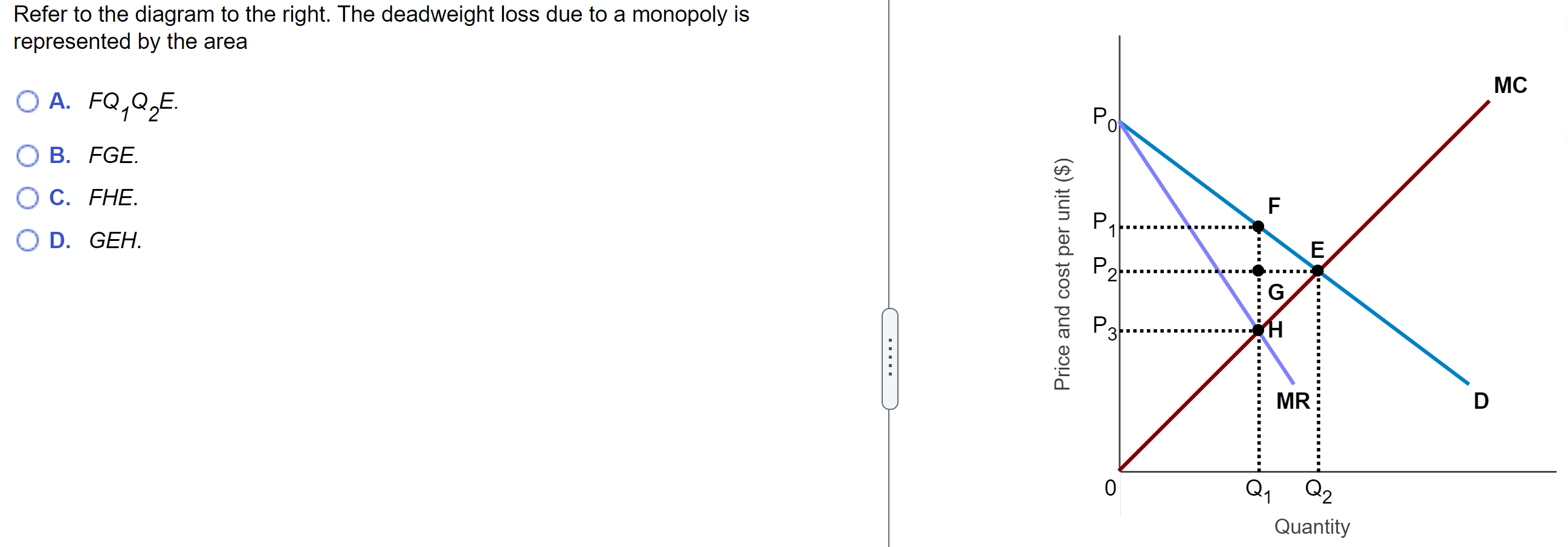 39 refer to the diagram to the right. the deadweight loss due to a monopoly is represented by the area