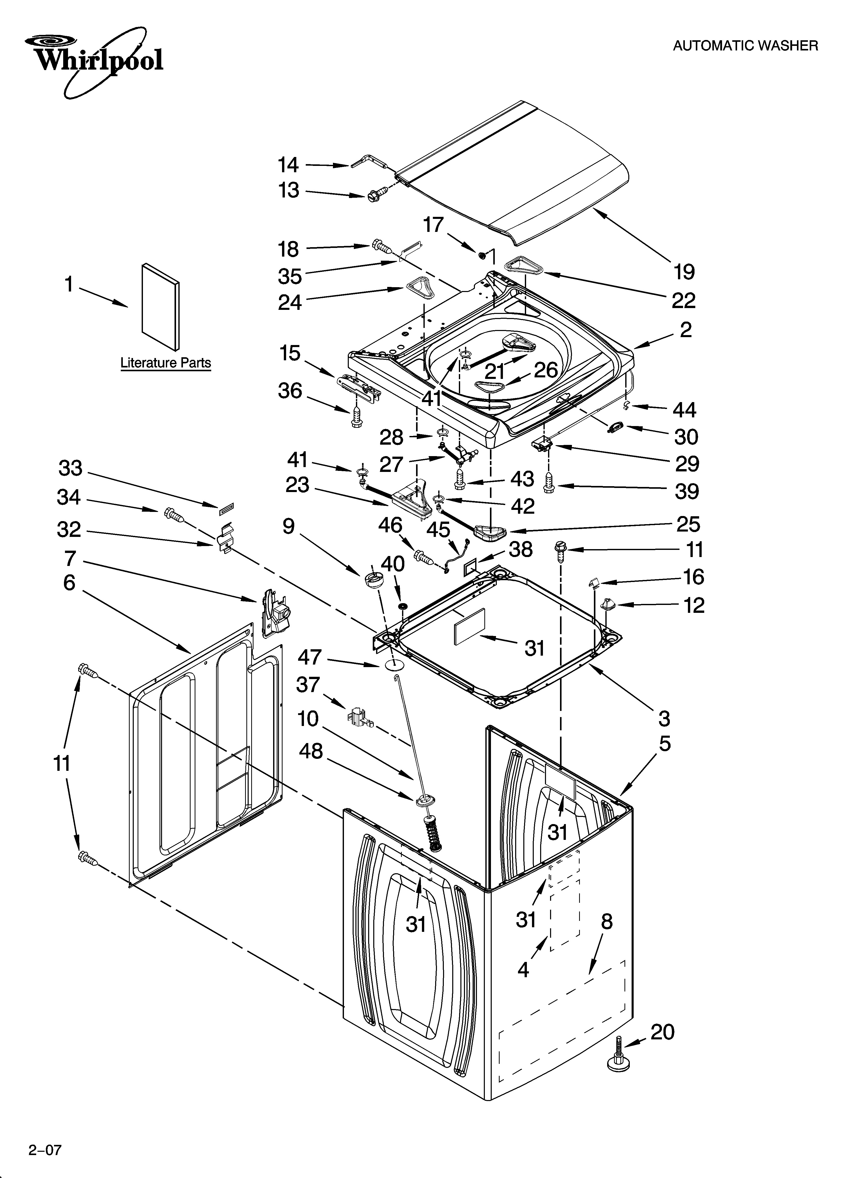 Parts List - Whirlpool AUTOMATIC WASHER. MODELS: WTW7300DW0 (White) ... TOP AND CABINET PARTS. 02/16/2017 ... W10607424 Owners Manual. W10607408 Tech Sheet. W10063045 Energy Guide.