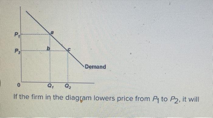 Chapter 10 - DocShare.tips 41. If the firm in the above diagram lowers price from P1 to P2, it will: A. lose P1P2ba in revenue from the price cut but increase revenue by Q1bcQ2 from the increase in sales. B. lose P1P2ca in revenue from the price cut but increase revenue by Q1acQ2 from the increase in sales.