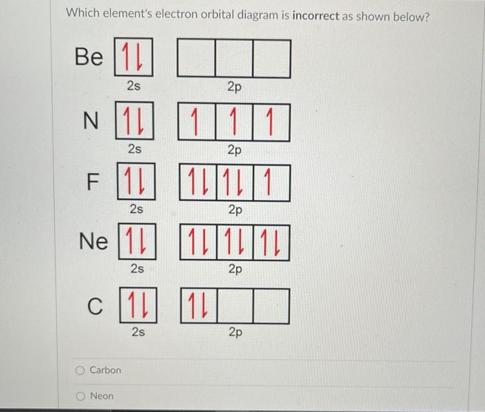electron configuration Flashcards | Quizlet draw the orbital diagram for neon and boron. draw the orbital diagram for carbon (C) and then answer the question below how many electrons (arrows) are in the 2p subshell?