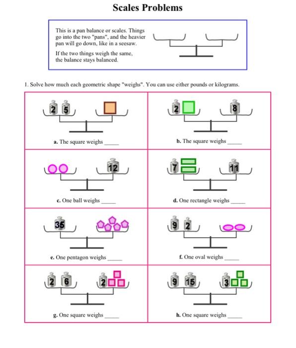 G9 IGCSE Force & Motion Quiz | Science Quiz - Quizizz Four identical steel blocks are placed on a balance. The reading on the balance is 220 N. ... A helium balloon is tied to a top-pan balance. A metal block of mass 100 g is placed on the balance. The reading on the balance is 91 g. ... The diagram shows four blocks of different metals. Each block has a mass of 12g. Write an equation of a line through the point (-5, -2 ... Each consists of a single square and two triangular pieces. Kyle has made a model... If in∆ABC,cotx=cotA+cotB+cotC then prove that, sin^3(x)=sin(A-x)sin(B-x)sin(C-x)... The diagram represents a pan balance each of the blocks marked x has the same value. The small blocks have a value of 1. What is the value of x if eac... PDF The University of The State of New York Grade 4 Elementary ... 1 The diagram below shows a balance. Side A has five blocks and side B has three blocks. The mass of each block is shown in grams (g). How much greater is the mass of the blocks on side A than the mass of the blocks on side B? A 50 g B 100 g C 150 g D 200 g Note that question 2 has only three choices. Balance Puzzles | Brilliant Math & Science Wiki A balance puzzle is a type of logic puzzle where the goal is to make all components equal, or balanced. For example, a scale is balanced when both sides have equal weight on them. It is important to determine the relationships between elements of a balance puzzle. For example, when trying to balance a scale, it is important to know the weight of the objects being added to each side.