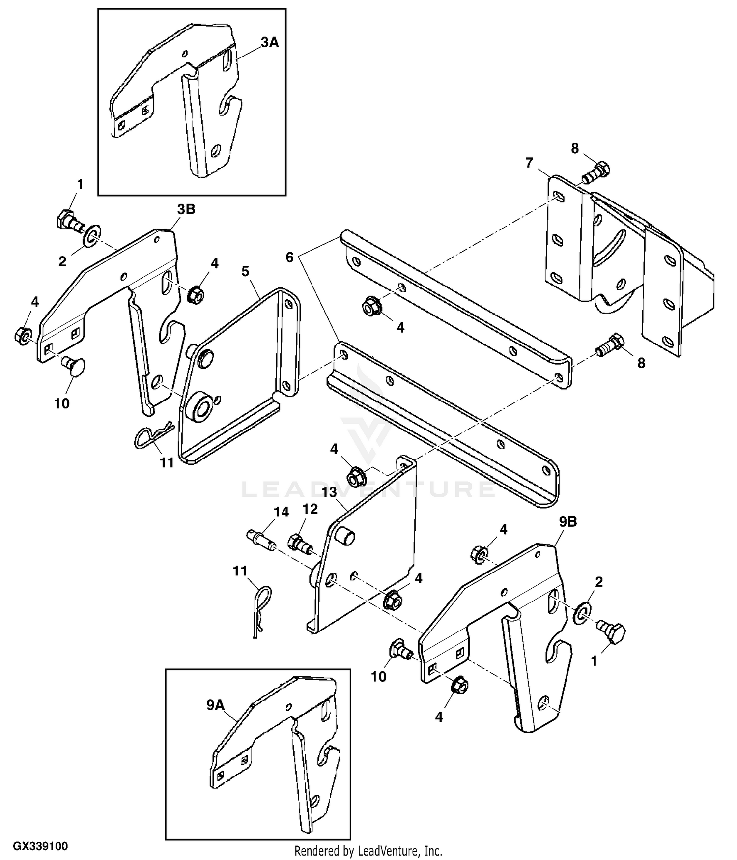 John Deere 54" LA150-190C-G110 Deck Parts Diagram John Deere LA150-190C-G110 54" Deck Parts Diagram with original John Deere Parts and easy to use parts look-up