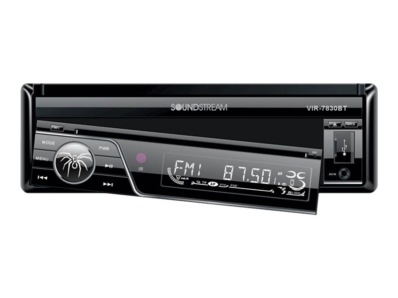 EOF Soundstream VIR-7830B at Onlinecarstereo.com Soundstream VIR-7830B. Soundstream. VIR-7830B. Bluetooth 2.0 Enabled Single-DIN In-Dash DVD, MP3, MP4, DivX Receiver with 7" Flip-Up TFT LCD Touchscreen and Front USB, AUX, SD Card Inputs. Item #30088 / Condition: Brand New.