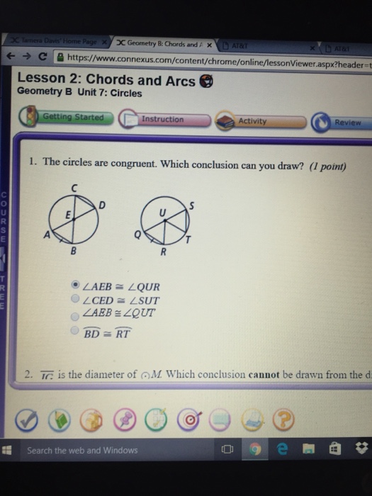 PDF Name Class Date 12-2 - Geometry Homepage Multiple Choice For Exercises 1-5, choose the correct letter. 1. Th e circles at the right are congruent. Which conclusion can you draw? CD>ST/AEB> /QUR /CED> /SUT BD 0 >RT 0 2. JGis the diameter of (M. Which conclusion cannotbe drawn from the diagram? KN>NI JG'HL LG 0 >GH 0 GH>GL