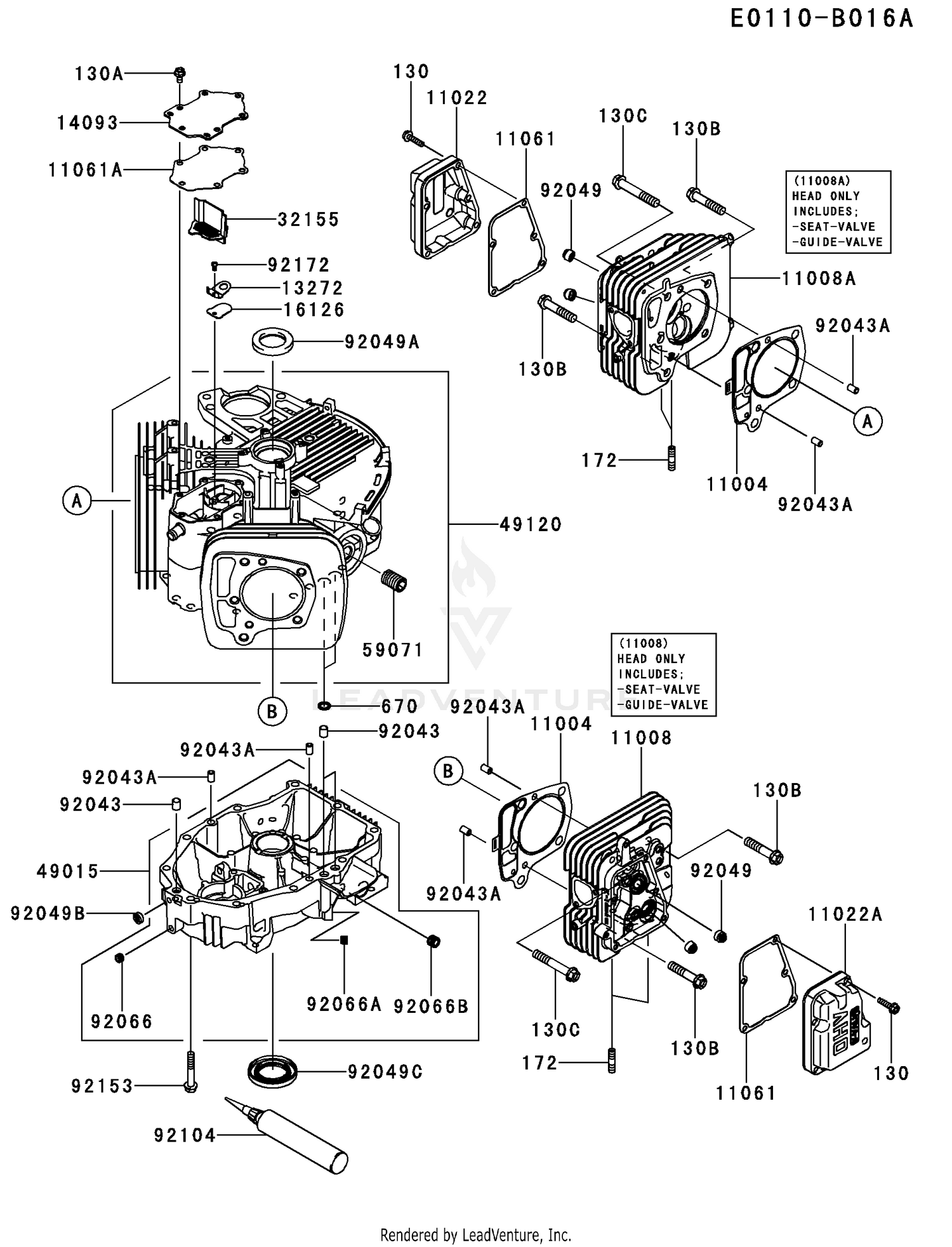 Kawasaki engine parts diagram. Engine Parts - Kawasaki Engine Store Kawasaki 49065-0724 FILTER OIL. $15.17. (0) Kawasaki Parts & Parts Diagrams | Official Kawasaki Parts House Flat rate shipping on OEM Kawasaki parts & accessories: dirt bike, motorcycle, atv, Mule, Tryrx, UTV, JetSki. Online Parts: (231)737-4542 ... You can easily find the parts through our parts diagrams after finding the appropriate category above. Search By Part Number. If you know the part number of the Kawasaki part you're looking for, enter it ... Kawasaki KLF300/KLF400 Bayou Parts Diagram - ATV Works Engine, Clutch & Exhaust - Yamaha. Intake & Fuel - Yamaha. Oil Filter - Yamaha. Parts Diagram: Kawasaki KLF300C Bayou 88-04 / KLF400 Bayou 4X4 93-99. Our Kawasaki diagrams are a carefully selected combination of OEM and aftermarket parts to give you the lowest prices possible. Part Number. › jacks-parts-lookupKawasaki Parts Lookup by Model - Jacks Small Engines Search for Your Kawasaki Model. Enter your Kawasaki model number below. Click the Search Button to See More Results. Parts lookup for Kawasaki power equipment is simpler than ever. Enter your model number in the search box above or just choose from the list below. How to FIND Your Kawasaki Model Number >.